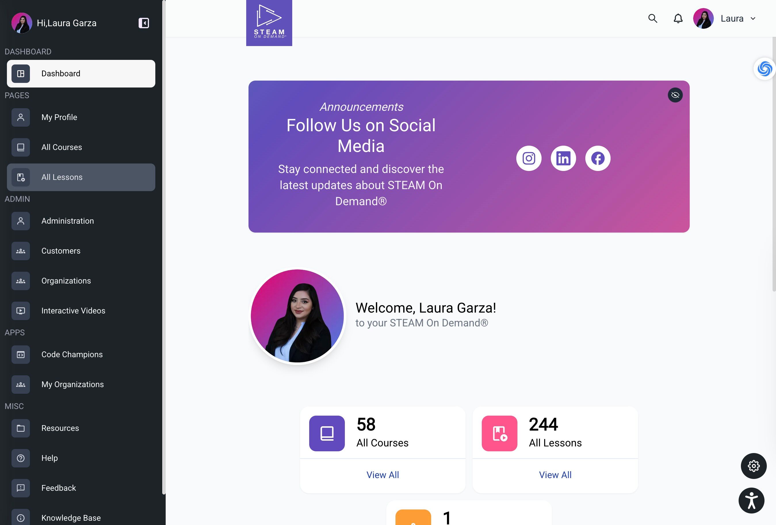 1. Click the "All Lessons" icon or select the "All Lessons" tab from the left-side menu.