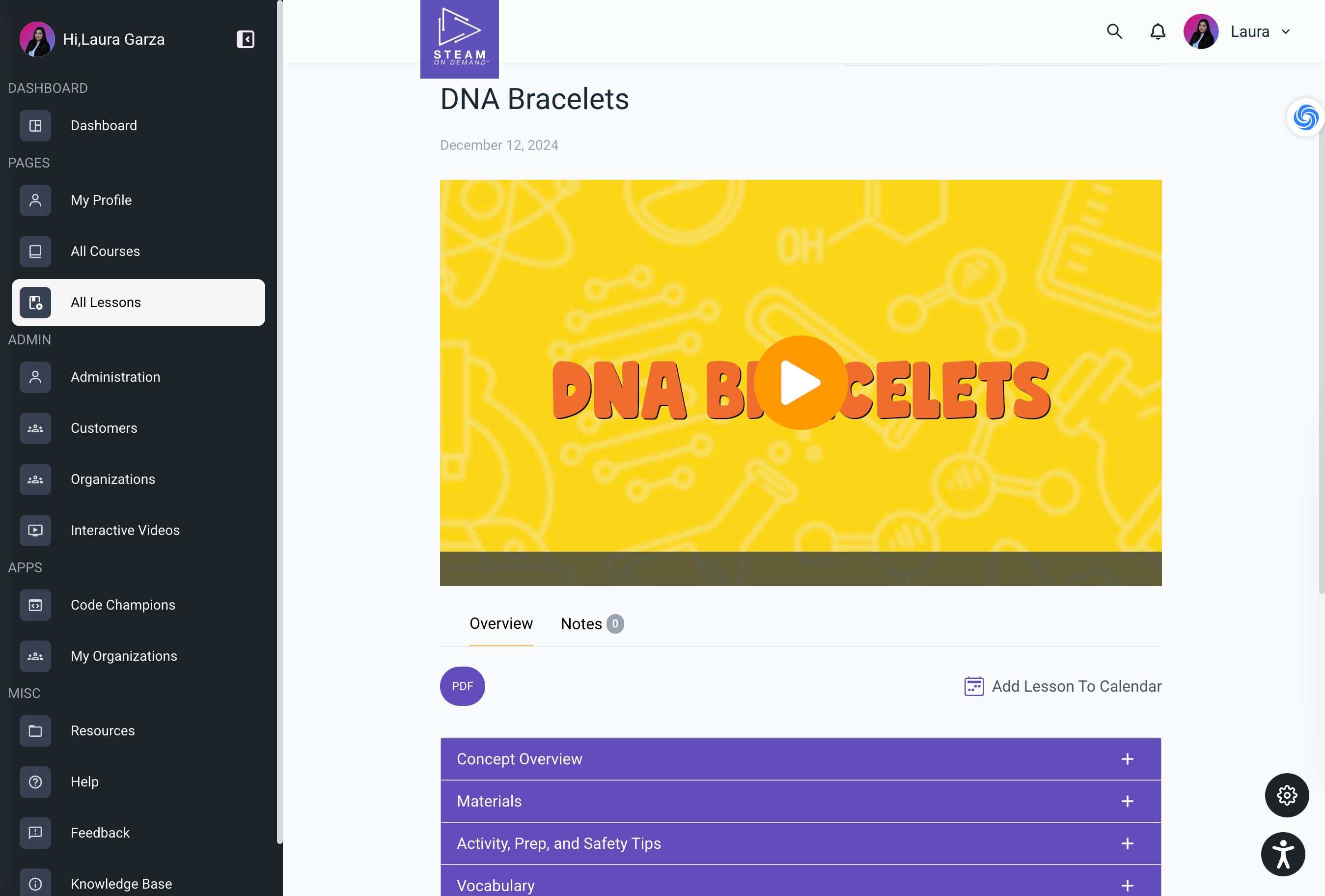 7. On the lesson page, access the video lesson, concept summary, discussion questions, activities, and additional resources to support instruction.